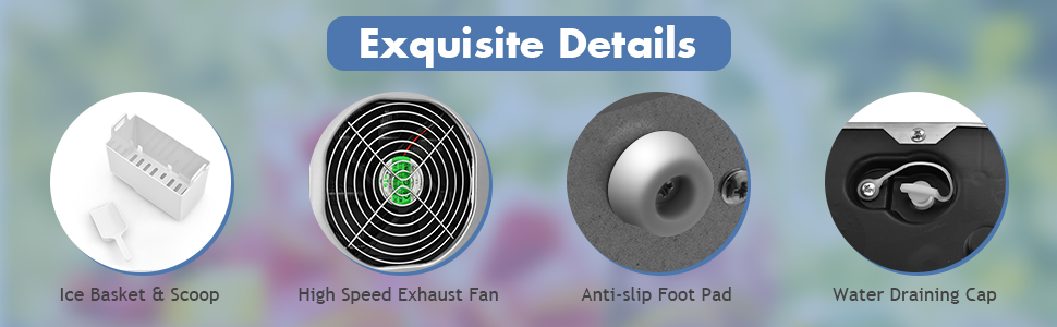 - 12-MONTH WARRANTY & LIFETIME TECH SUPPORT - Our ice machines are covered by a 12-month warranty and lifetime tech support. Each portable ice maker is equipped with an ice basket and an ice shovel. Please make sure that these accessories are fully equipped when you receive it, and if there are any missing, please get in touch with us. Easy and fast replacement is guaranteed.